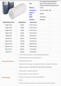 - Soft, highly absorbent rolls and sponges designed for dressing primary and secondary wounds