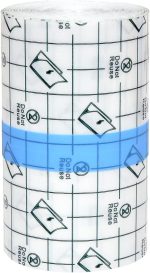 The Transparent waterproof tape wide-area fixation to reliably secure and protect wound pads and ointment dressings as well as instruments, probes, catheters and measuring devices. It is non-sterile and comes on a roll in various widths. It consists of a thin breathable polyurethane film coated with a skin-friendly adhesive in a special pattern technique. The product protects reliably against water, bacteria and contaminants, yet granting a high MVTR. The unique application technique with the distinctive red stripe allows for easy and quick application. Its extra thin film is pliable and stretchable conforming to body contours like a second skin. It’s semi-permeable film is both waterproof and bacteria proof, protecting the player’s primary wound dressing. The film is permeable from the inside so it lets the skin breathe. The film is easy to apply and remove. A removal tip is to take one corner of the film and pull – fully extending the stretch of the film. It will lift away from skin allowing the film to be easily removed without adhesive irritating skin or pulling hairs. Film is practically invisible and is aesthetically pleasing.